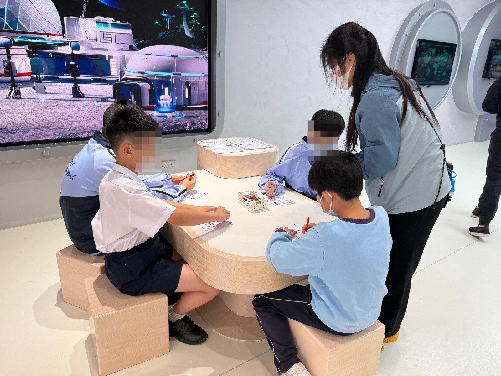 今天(4月13日),將軍澳培智學校的學生到訪愛國教育支援中心「香港航太科普教育基地」。同學們體驗了各項航天互動遊戲,深入了解航天員在太空中的生活情況,寓學習於玩樂。