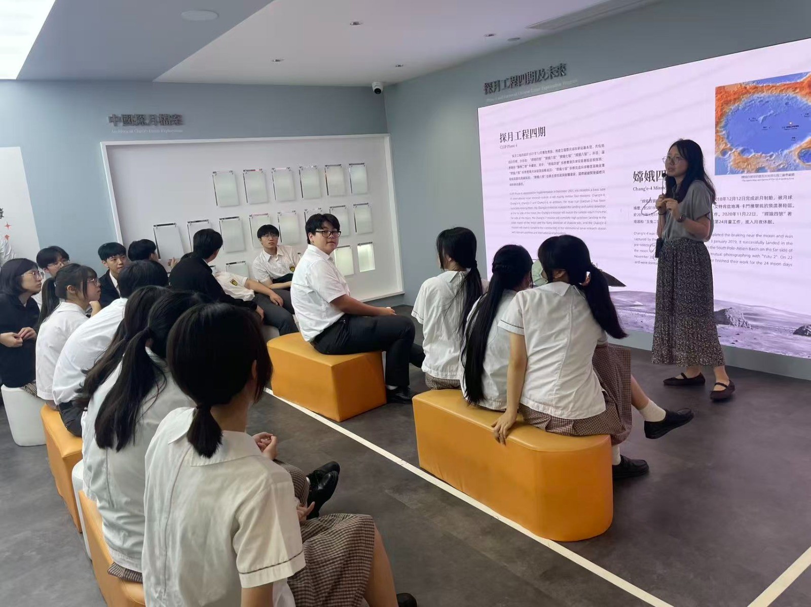 師生參觀了中心的「航天科普教育基地」、「抗戰勝利八十週年專題展覽」,以及「星耀中華:時代棟樑的風範與精神專題展覽」。