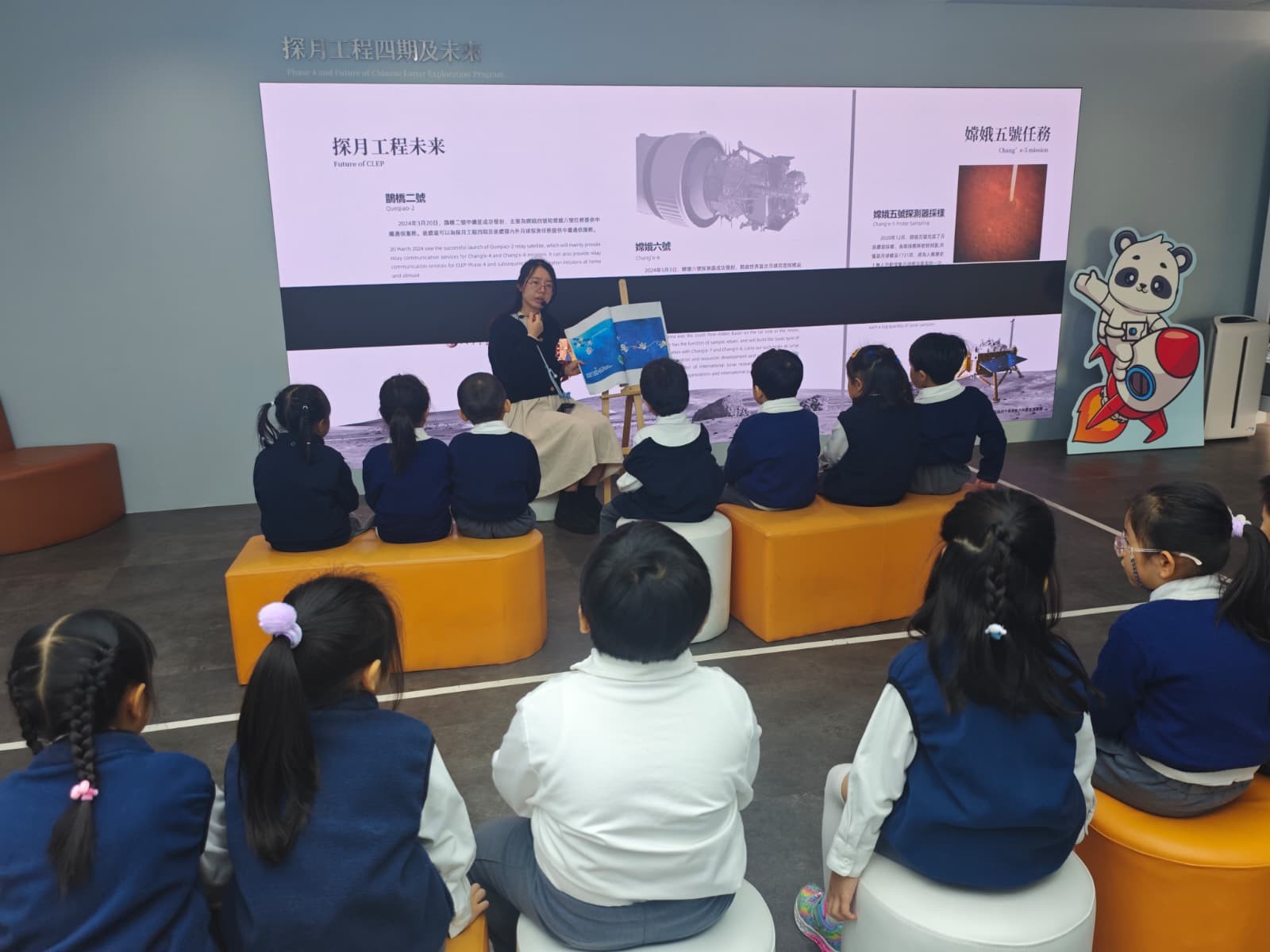 小朋友專心聆聽講解,並參與了不同的航天互動體驗,了解航天員在太空中的生活。