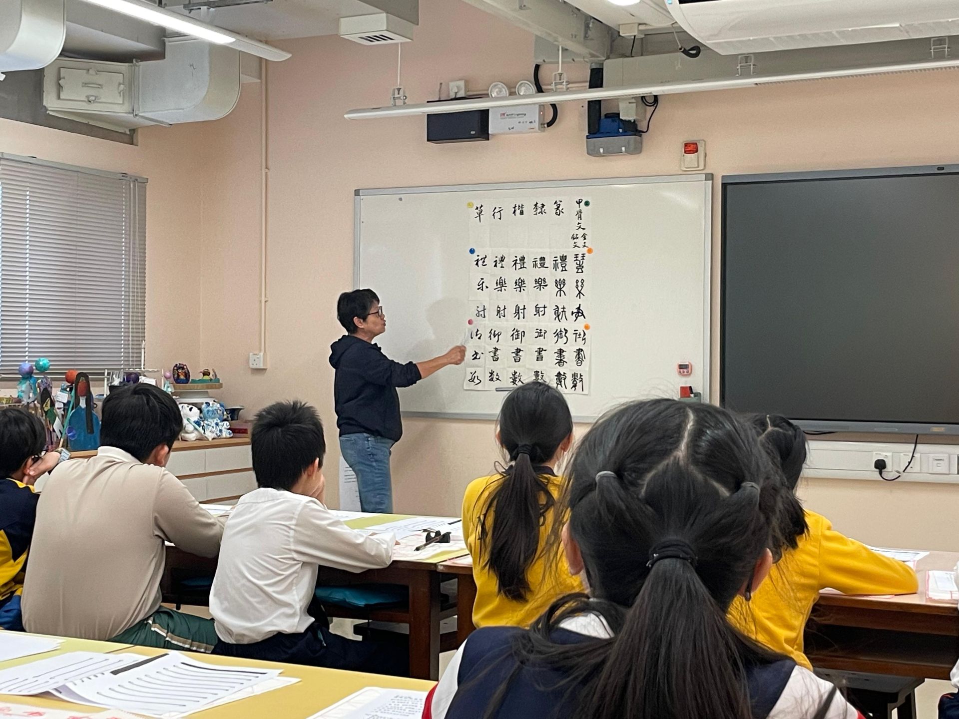 愛國教育支援中心承辦由北角官立小學主辦的2025/26年「心繫家國:書意傳新」課程,今天(3月20日)書法課程正式開課。導師分享了古代「六藝」 中「禮」、「樂」、「射」、「御」、「書」、「數」的六種修養。通過寫字,不只學到技巧,也能體會到專注和修養的培養。