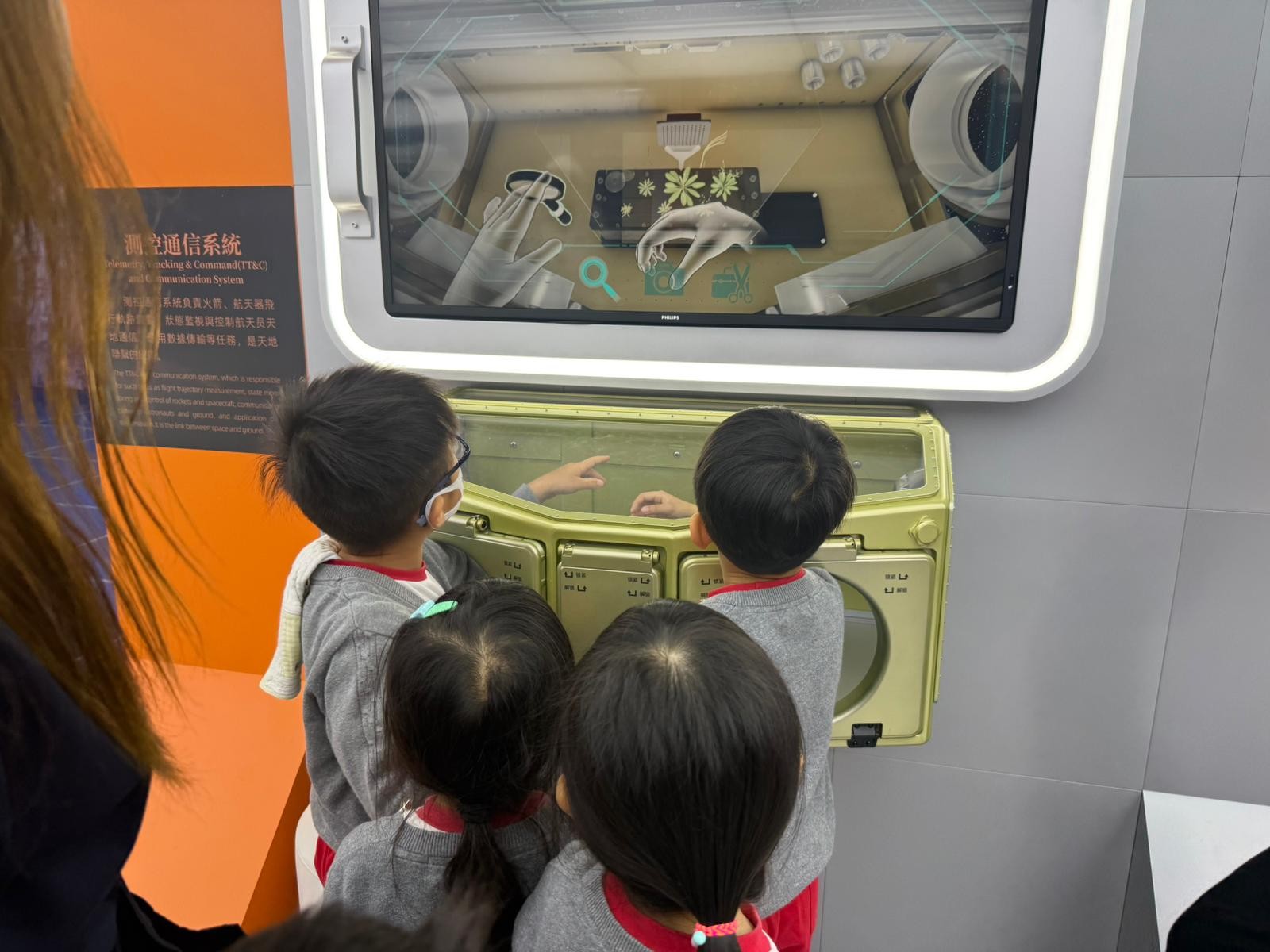 今天(4月9日),救世軍禾輋幼兒學校高班學生到訪愛國教育支援中心內的「香港航天科普教育基地」,進行航天研學參訪活動。小朋友們專心聆聽導賞員講解,踴躍參與各項航天互動體驗,深入了解航天員在太空中的生活情況。這次參訪不僅為學校的主題學習搜集了豐富資料,亦提升了幼童對國家航天科技的認識與興趣。中心除了為中小學提供參訪活動外,亦歡迎幼稚園組織學生或親子形式的研學參訪,一同探索航天故事。